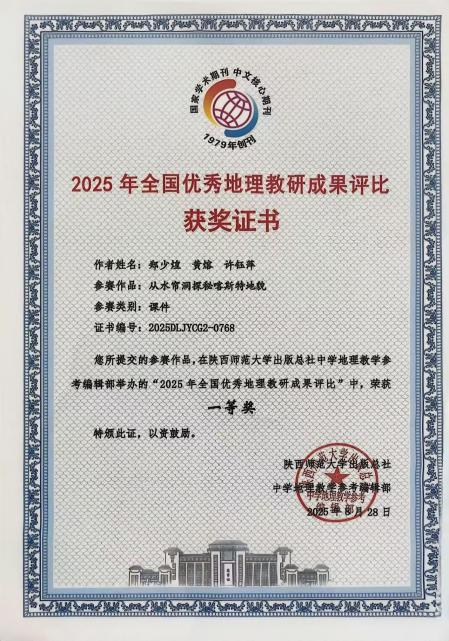 与此同时,在2025年全国优秀中学地理教研成果评比大赛中,我院学子提交的教学课件作品也表现优异,充分展现了我院在地理教学创新与实践方面的扎实功底。