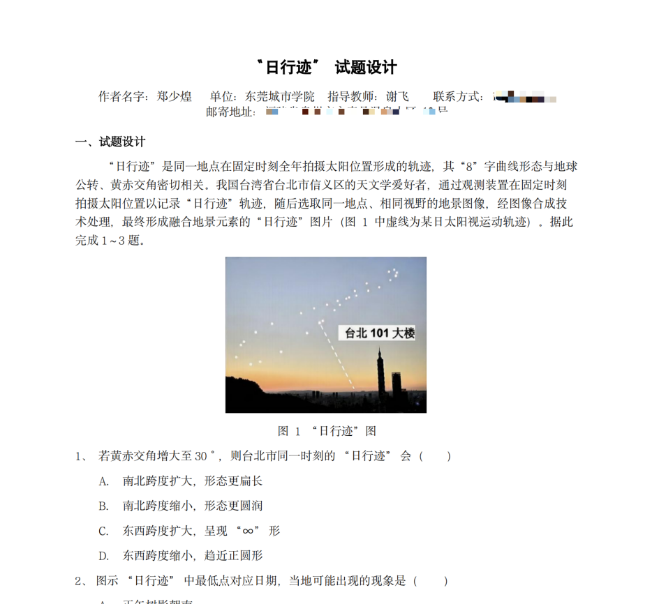 作品名称:《日行迹》试题设计