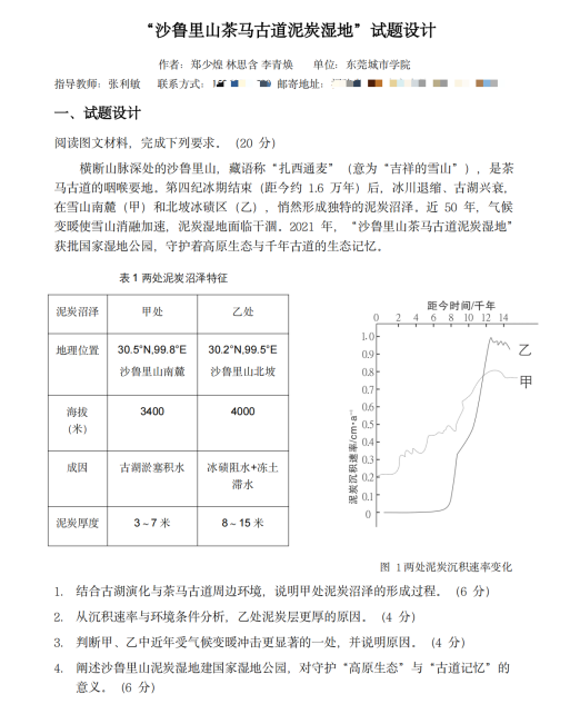 作品名称:《沙鲁里山茶马古道泥炭湿地》试题设计