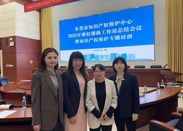 2025 年 12 月 23 日,东莞市知识产权保护中心维权援助工作站总结会议暨知识产权维权援助专题培训在市市场监督管理局(知识产权局)隆重举行。会上,东莞城市学院知识产权维权援助工作站正式成立,作为寮步镇唯一兼具公益服务与科研属性的知识产权专业保护平台,不仅为区域中小微创新企业带来专属权益保障,更搭建起高校法学实证研究与政企实际需求深度对接的科研桥梁。法学院执行院长丛珊博士、维权站站长李奕副教授、核心成员蔡晓青博士、曾芷晴老师组成团队参会,共同见证这一校地协同、研用结合的重要时刻。