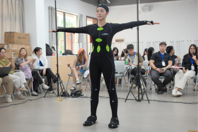 青瞳视觉资深项目技术工程师、资深动捕师文铎臻在智慧教室开展实操实训教学,围绕光学动捕动画短片制作、实时数字人流程创作等内容,采用分组实操与一对一指导相结合的方式,将前沿技术转化为可落地、可应用的课堂教学技能。
