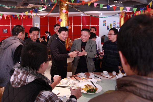 中午12时,宴会准时开始,院长安少华、党委书记朱志德、副院长张林、院督学陈丁堂等院领导与春节留守学校的教工、同学同吃了这顿团年饭。席间,安院长与在坐的同学们进行了亲切的交谈,详细询问他们的生活、学习和社会实践情况,院团委书记杜鹏举代表学院为每个留校师生派发了过年红包;院领导们还一同来到师生当中,举起手中的酒杯向师生们送上节日的祝福,祝愿大家过一个欢乐祥和的春节,迎接充满希望和挑战的又一个新年,祝愿我们共同的城市学院大家庭在新的一年里更有新的气象。