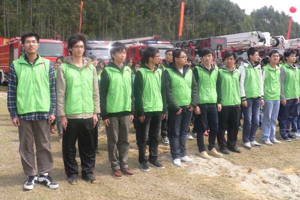 3月16日,我院志愿服务中心的67名志愿者在院团委老师的带领下,前往黄旗山观看东莞市消防汇报表演。