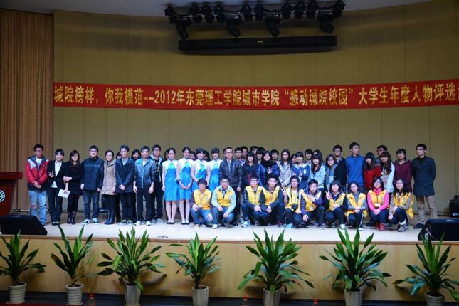 11月27日,由我院团委主办、财经系承办的“城院榜样,你我模范”2012年东莞理工学院城市学院“感动城院校园”大学生年度人物评选活动颁奖典礼在学术报告厅隆重举行。我院团委书记罗文芳老师、各系部团总支书记以及辅导员代表参加了颁奖盛典。