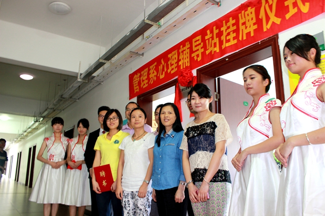 为了提升大学生心理健康教育水平,6月12日下午,管理系在5A304 、305 室举行了管理系二级心理辅导站揭牌仪式。学院心理健康教育与咨询中心主任余琼老师、管理系党总支副书记吴春庚老师、系辅导员、班主任老师以及2013级各班心理委员参加了活动。