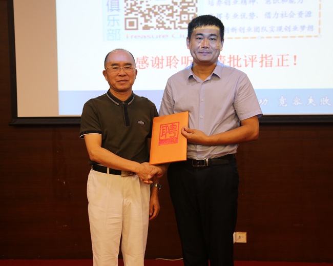 王卫平院长向迟云平副院长颁发了“东莞理工学院城市学院创新创业特聘导师证书”。