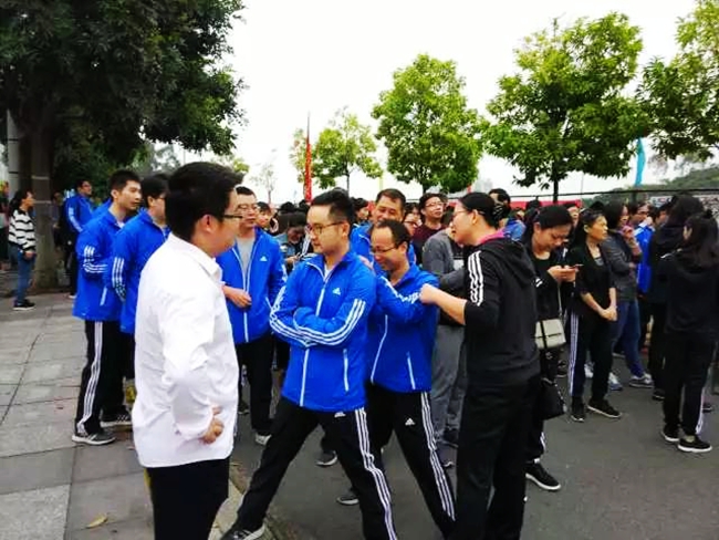 “借个胳膊我签到,来,别动!”两个穿着蓝衣的男教师好似活跃的成熟的大男孩,都互相让出了自己的胳膊。在胳膊的支撑下,老师在表格上稳当的签上了自己的名字。这一胳膊是老师们团结的支撑,是老师们意志足够硬的昭示。