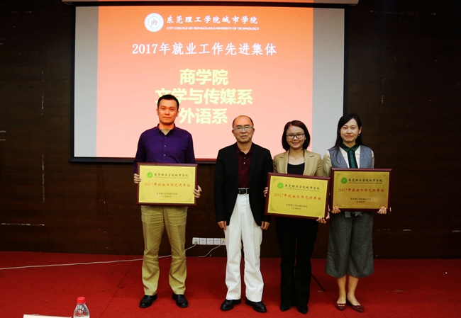会议对商学院、文传系、外语系三个获得“就业工作先进单位”荣誉称号,对李玉春、杨佳青、蔡超明、祁晓恩、林桂宏五名获得“就业工作先进工作者”荣誉称号进行了表彰和奖励。