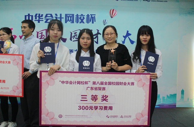 6月14日,第八届中华会计网校杯全国校园财会大赛广东省复赛在于在广东金融学院举行,来自省内16所高校财会学子参加了比赛。我院由冯晓玲、黄金凤、邓琼波同学组成的代表队荣获广东省赛区三等奖,指导老师鞠成晓、宋慧敏组被评为本次竞赛优秀指导老师。