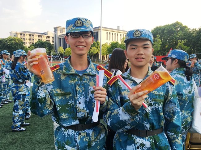 新生们经过了一天辛苦的训练,拿到了班助们带来的饮品,感受到了班助和老师们的关怀,脸上露出了开心的笑容。16级人力资源管理2班的欧阳文秀说:“当新生们拿到冰凉的饮品对我们说谢谢的时候,内心真的十分开心。其实,新生对很多事情还很迷惑,很多事情想法还比较不周全。我们班助最大的作用就是引导他们不断成长。在帮助他们的过程中,我们也在不断的成长,真的也是一件十分难忘的事情。”(大学生记者 许曼莉)