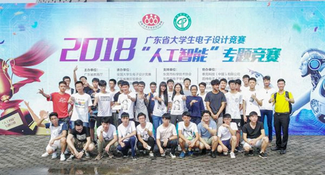 近日,由广东省教育厅主办、东莞理工学院承办的2018年广东省大学生电子设计竞赛——“人工智能”专题竞赛公布获奖结果。我院电子工程与智能制造学院和计算机与信息科学系组织了15支队伍共计45名学生参加了本次竞赛,获得了二等奖5项、三等奖3项的优异成绩。