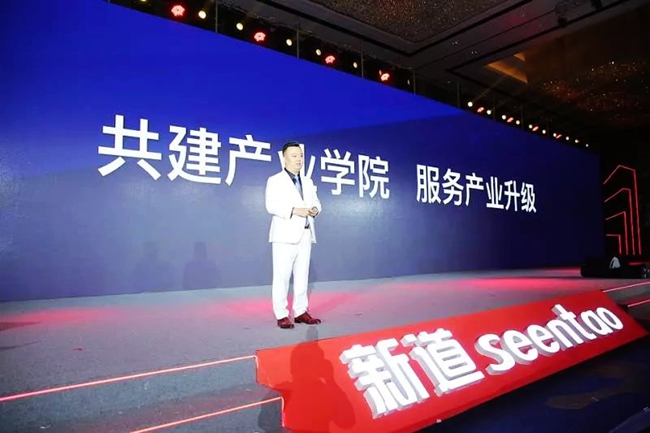 新道科技股份有限公司董事、总裁周前进在大会上作了《共建产业学院 服务产业升级》的主题分享。