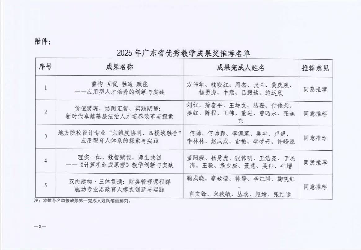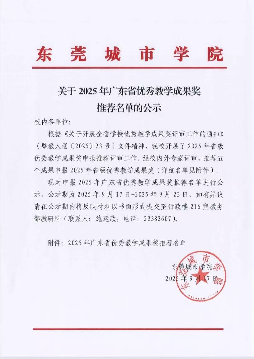 关于 2025年广东省优秀教学成果奖推荐名单的公示
