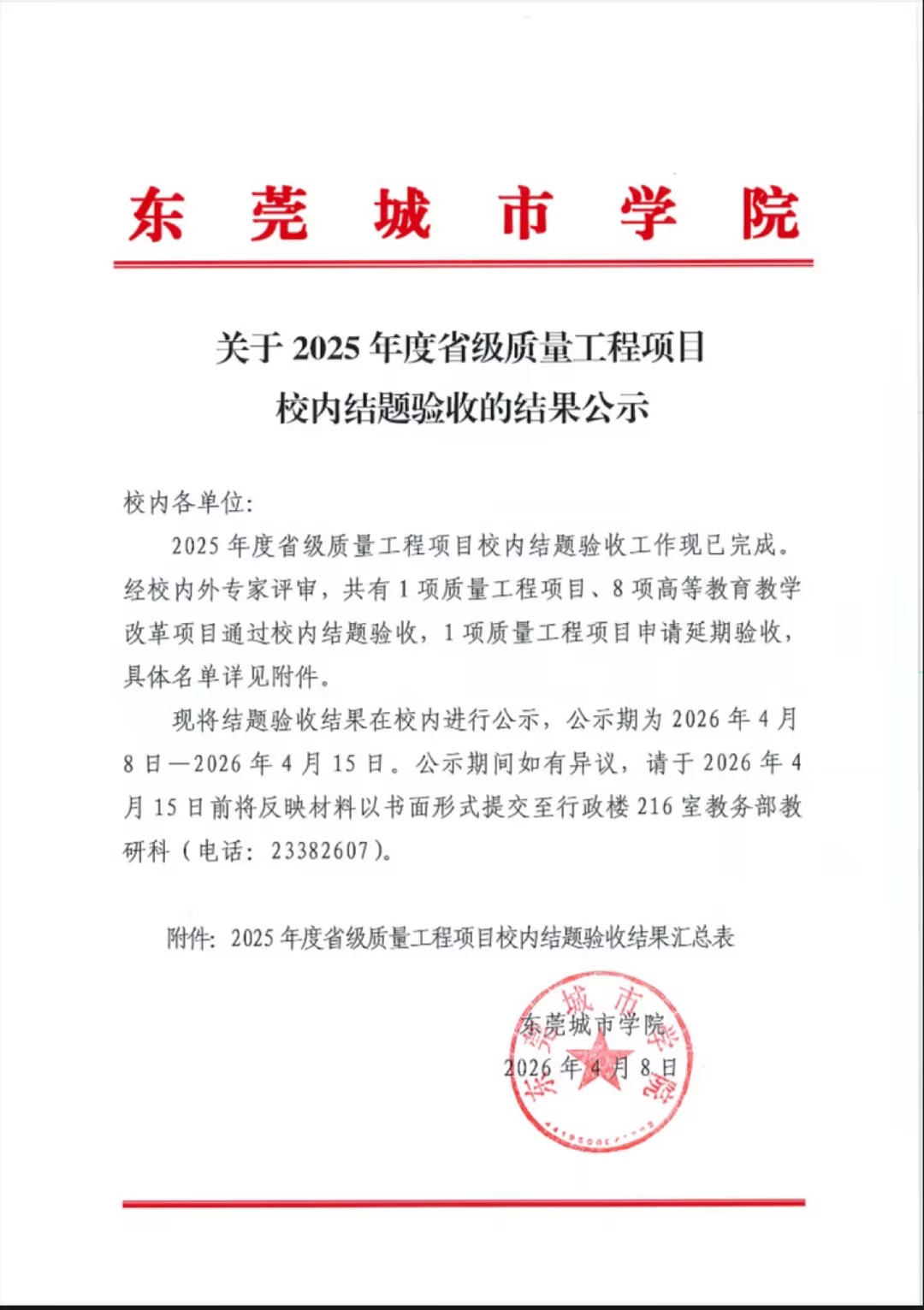 关于2025年度省级质量工程项目校内结题验收的结果公示